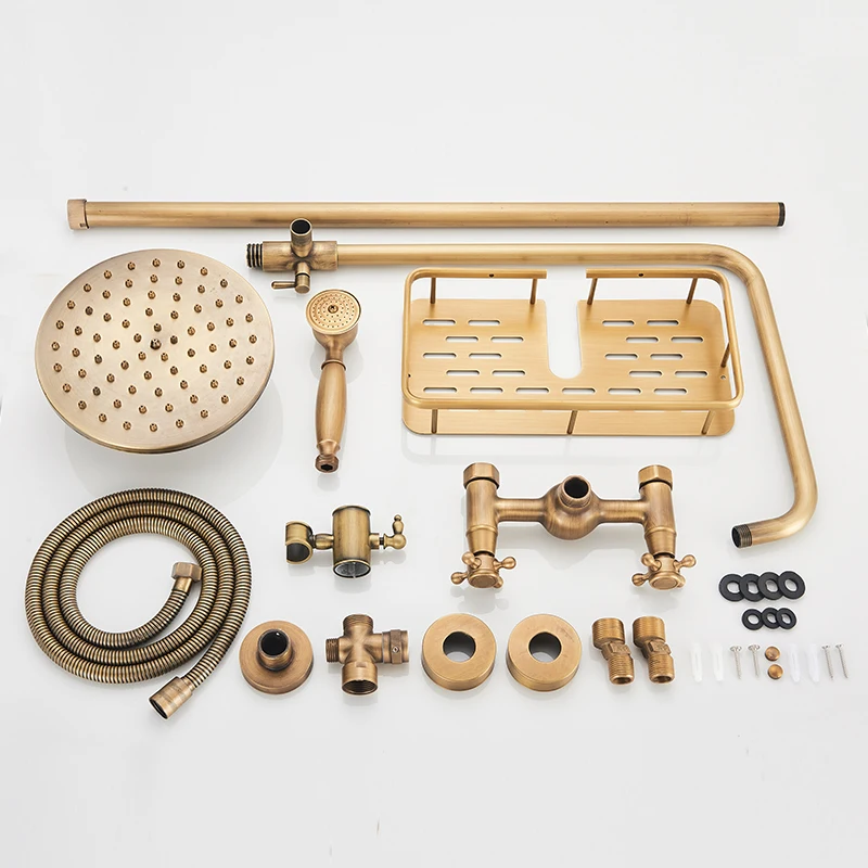 Brass Antique Wall Mount Shower Set Faucet Single Handle with Handshower + Shelf Bathroom Shower Mixer Tap